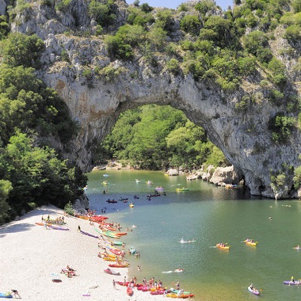 Wandel door de spectaculaire kloven en kano onder de beroemde Pont d'Arc. Avontuur en ontspanning in het hart van het zonnige Zuid-Frankrijk.